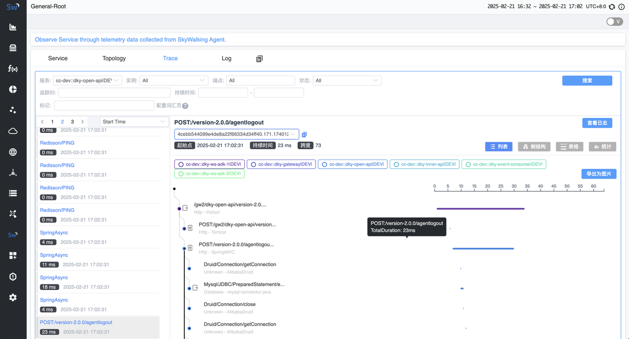 - 观察 Skywalking 页面空白卡死的情况和数据自动清理的情况(没问题)。
